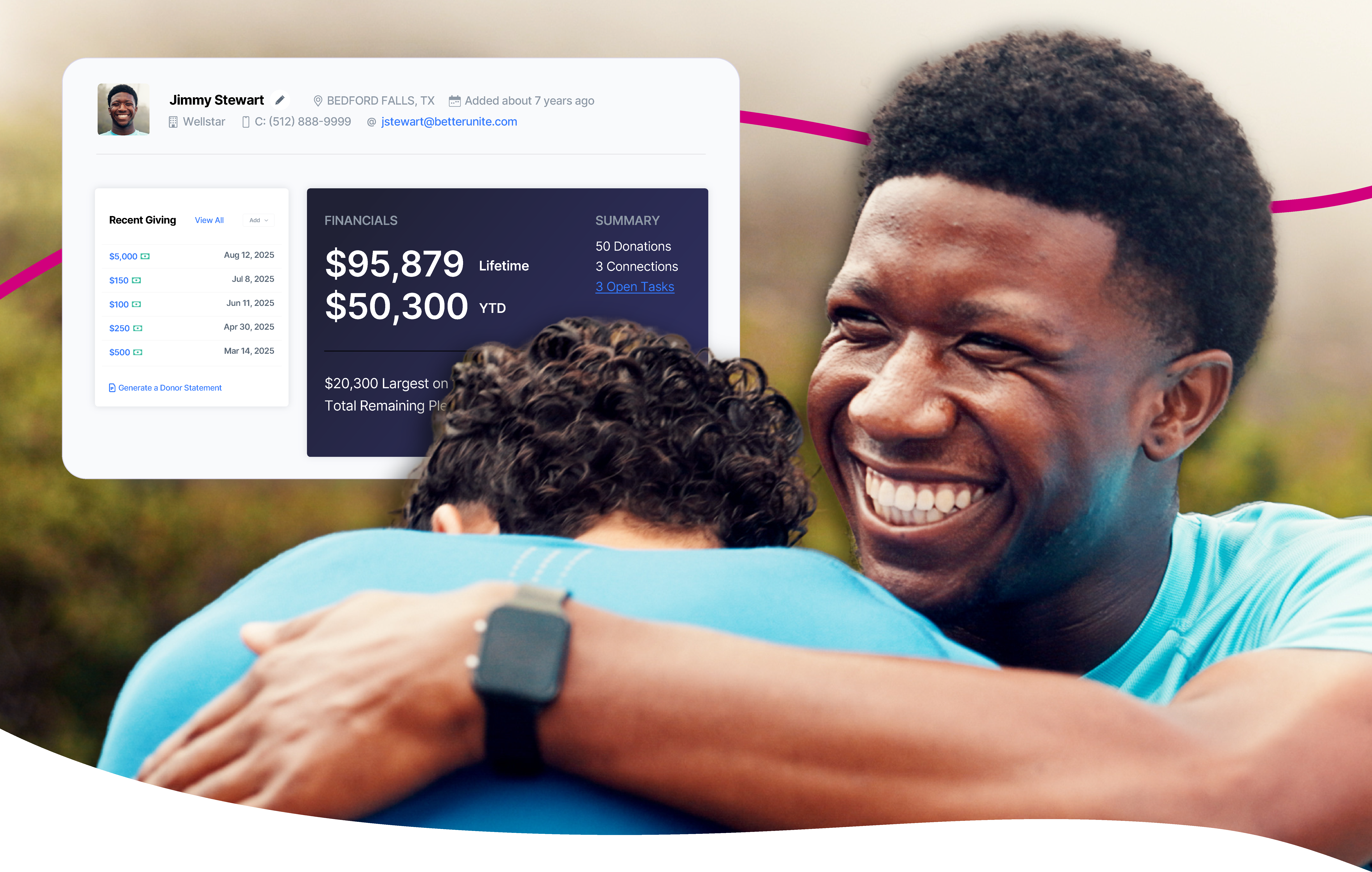 BetterUnite's all-in-one fundraising platform combines donor management, event ticketing, moves management, and stewardship automation in a single system — purpose-built to help nonprofits retain more supporters and raise more money.