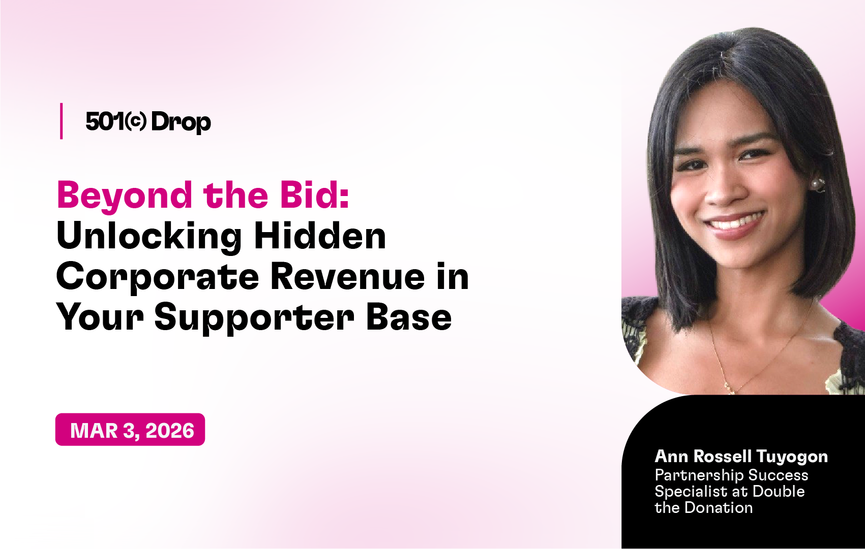 In this 501(c) Drop, Leya Simmons (CEO and co founder of BetterUnite) was joined by Ann Rossell Tuyogon from Double the Donation to talk about a smarter path to corporate revenue. Not a colder path. Not a harder path. A smarter one.